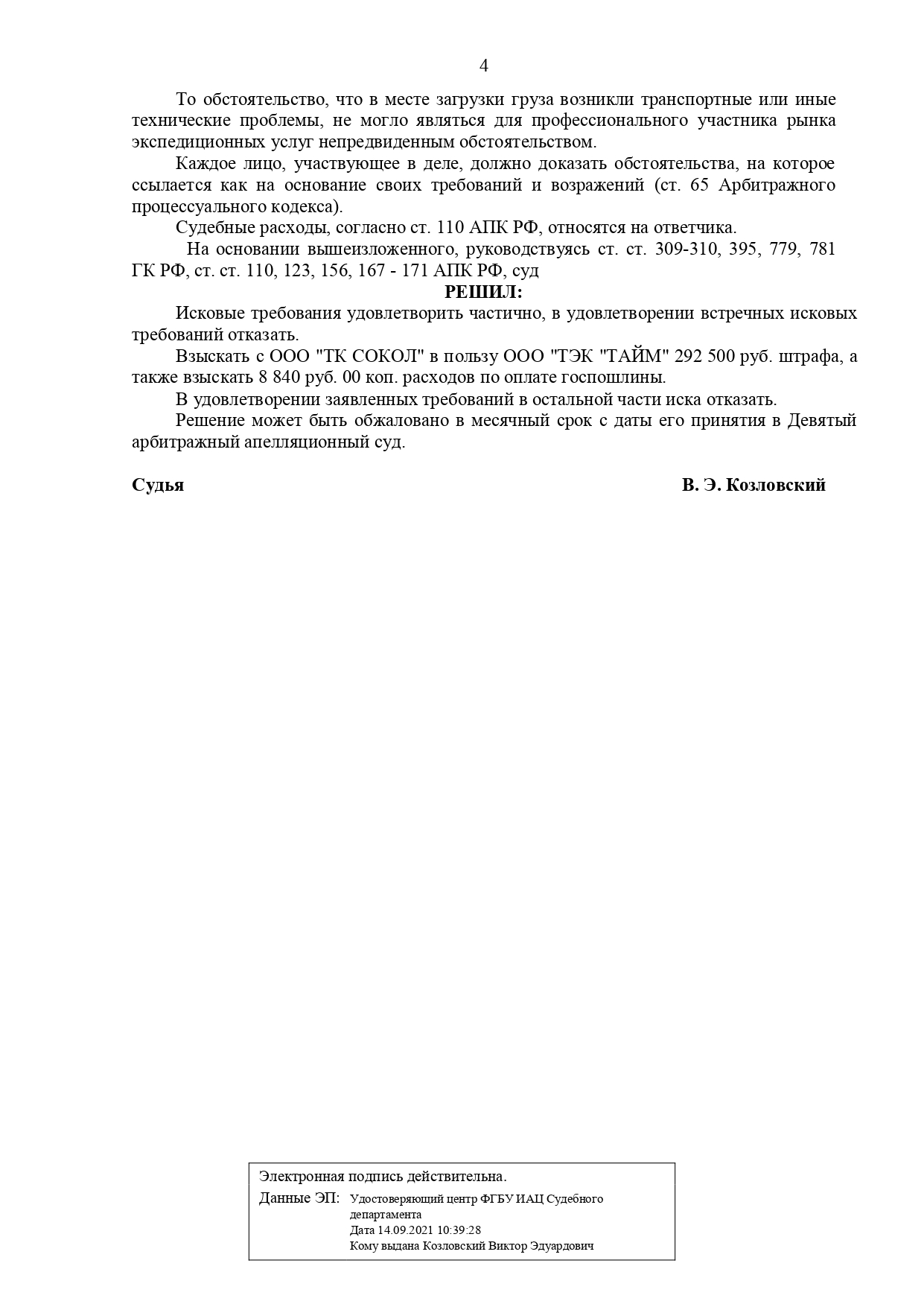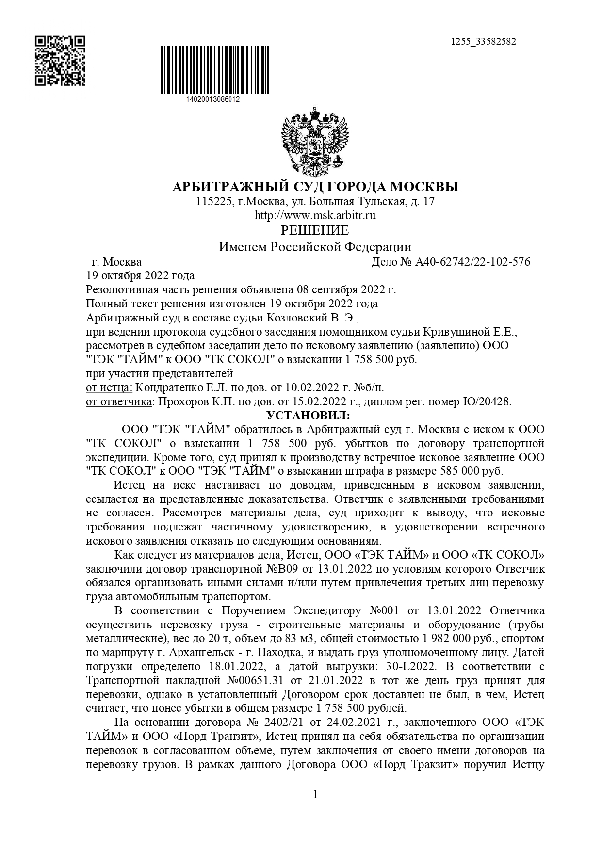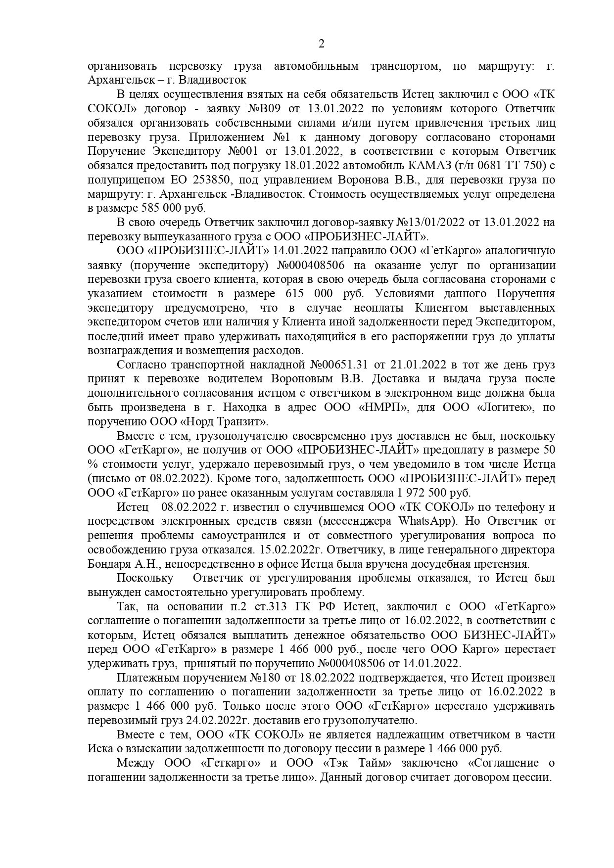 Мы выступали на стороне одного из экспедиторов. К которому предъявили требования об возмещение убытков, которые возникли из-за удержания груза конечным перевозчиком.