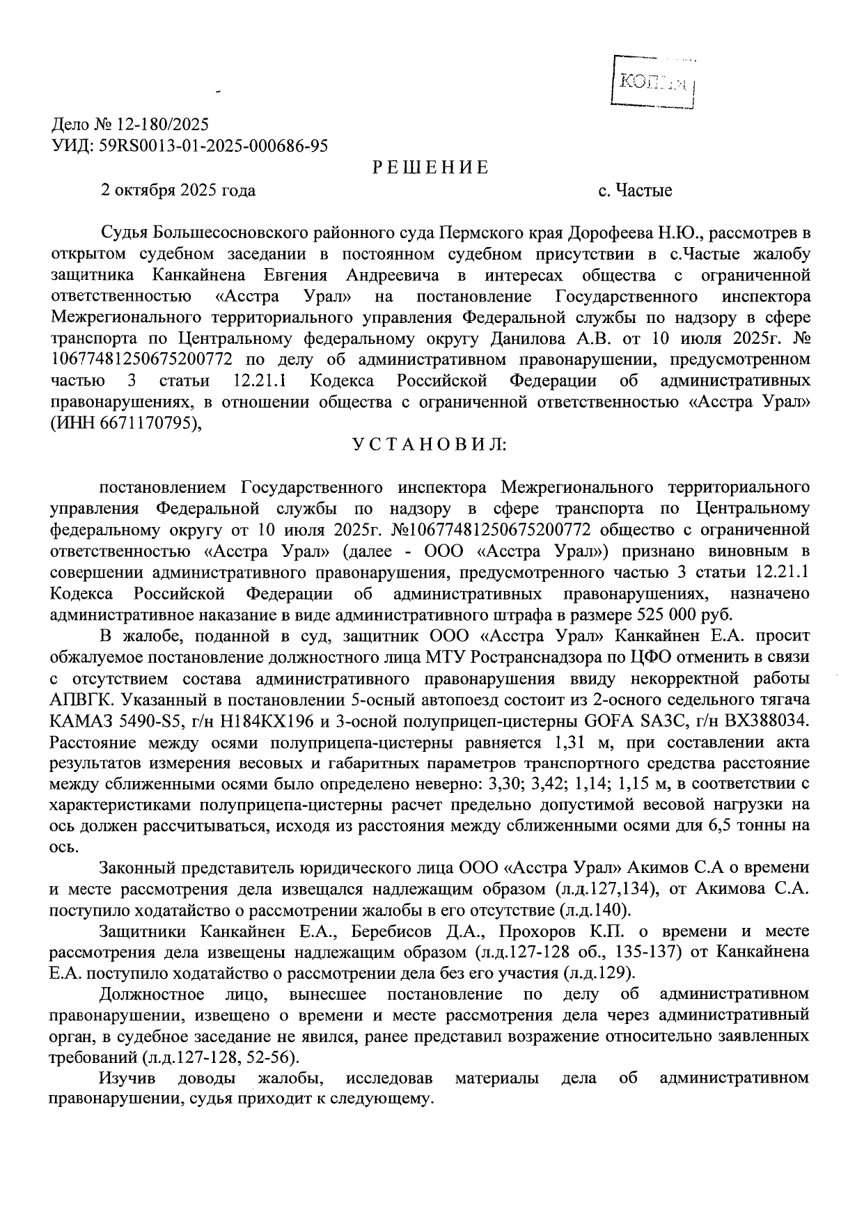 Оспаривание штрафов за превышение допустимой массы и нагрузки на ось