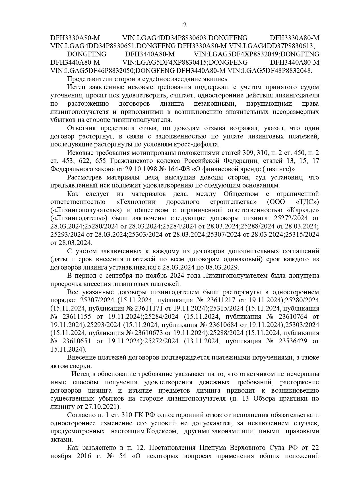 Суд признал недействительными односторонние отказы ООО «КАРКАДЕ» от договоров лизинга. И обязал лизингодателя вернуть нам технику.