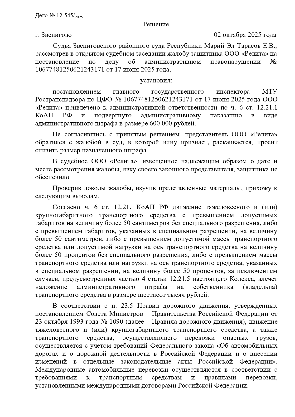 Клиент получил штраф в размере 600 000 руб. за перегруз.