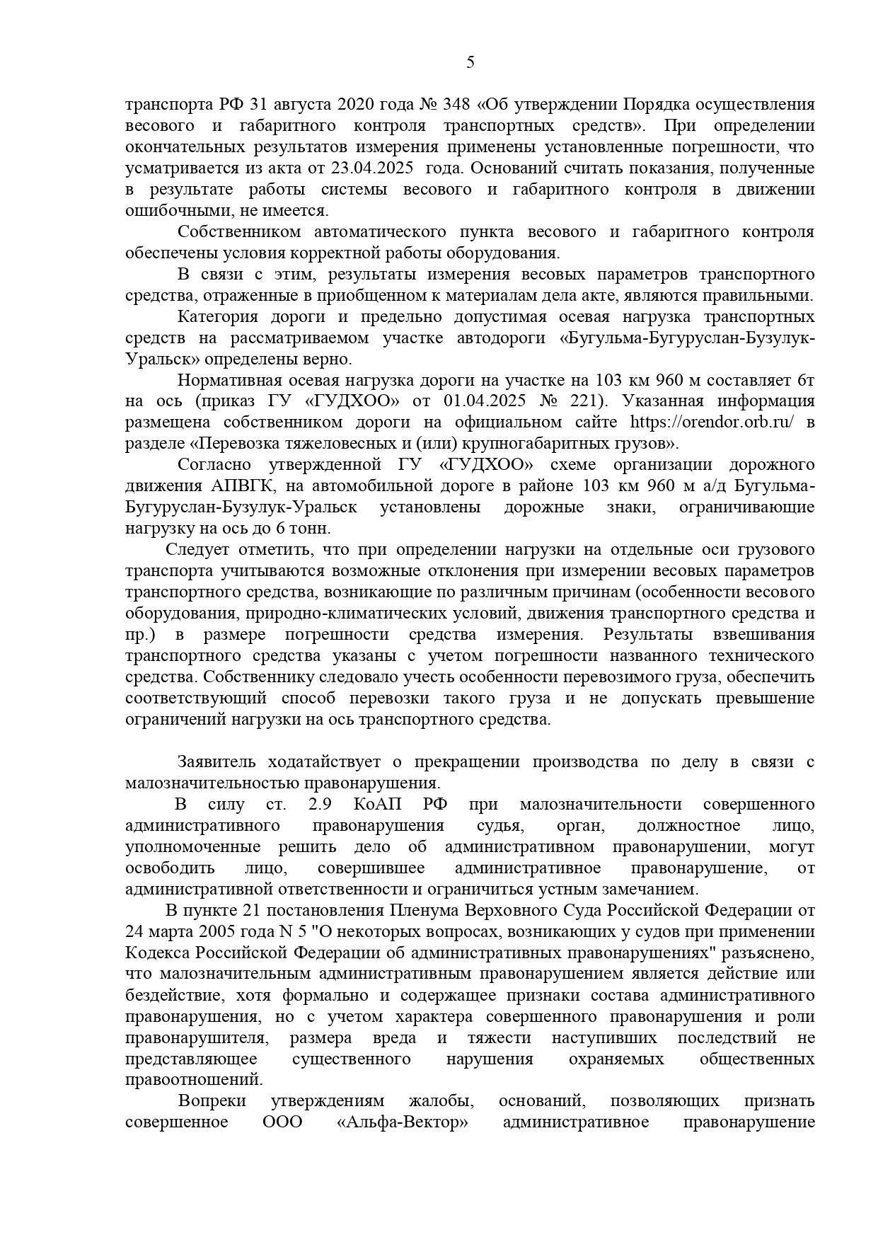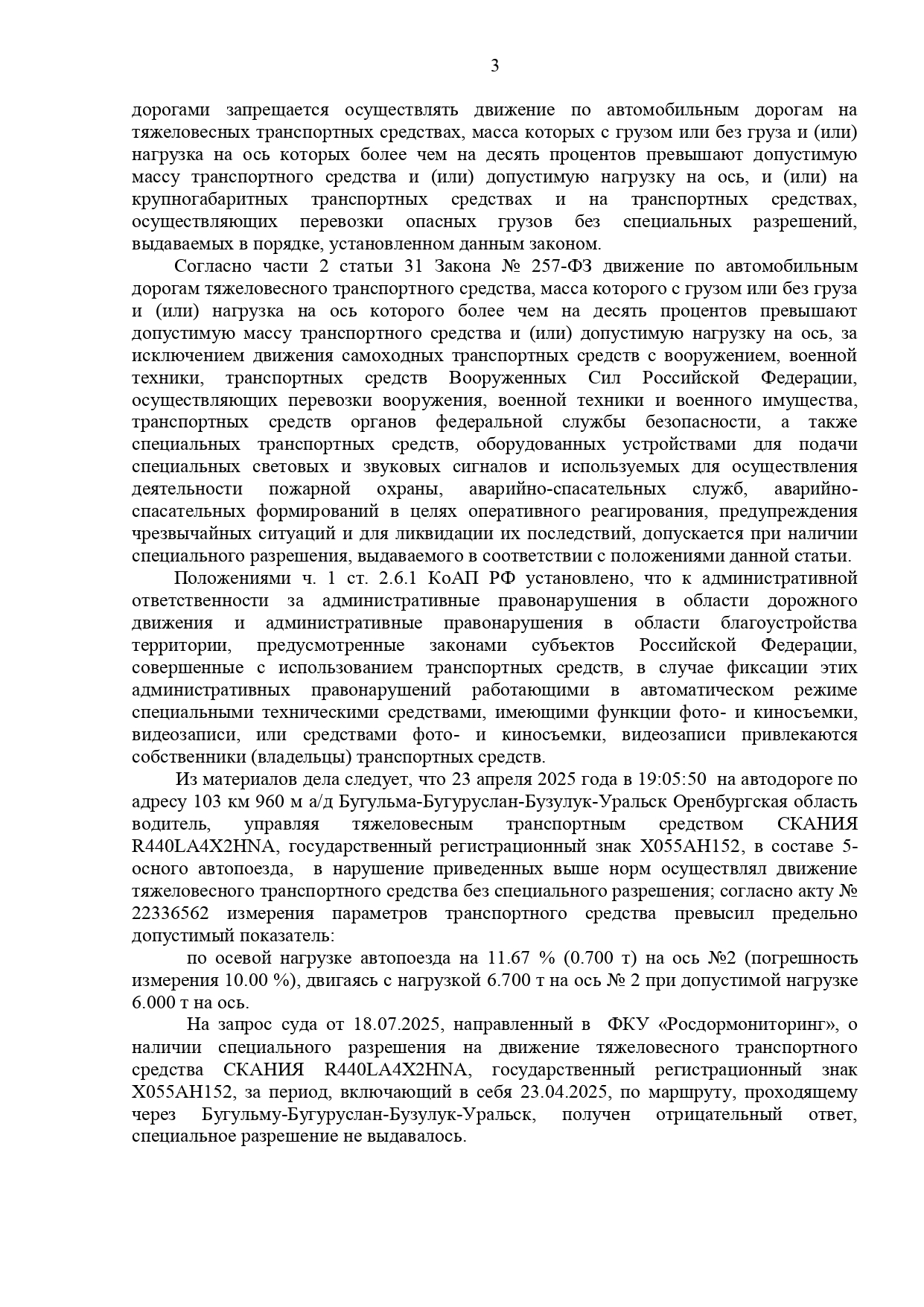 Фактическое нарушение было. Данная дорога не попадает в исключение в сезон просушки дорог.